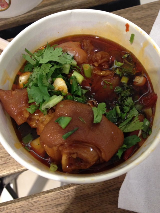 猪脚的别样吃法 心似莲花开等級32014-05-0614 瀏覽 關注 工作日的中午去的, 人还不算少, 登记了试吃名字后, 服务员很热情地先送了两瓶矿泉水给我们。 猪脚是事先做好放在锅里的, 需要时直接从锅里盛出来。 猪脚味道是我喜欢的, 糯糯的,很软, 入味,既有卤味又微辣, 肥而不腻,却也劲道, 很适合我的口味。 面和米线烫熟以后, 就用的是卤猪脚的汤水板的面, 再格外加一点儿葱花和香菜, 就着猪脚吃,正好哈, 就是面的味道稍微淡了点点。以上食評乃用戶個人意見 , 並不代表OpenRice之觀點。讚好分享猪脚的别样吃法 钏鑫伍氏猪脚 https://s.openrice.com/KtbT3G039eA00檢舉 張貼 評分4味道3環境4服務3衛生3抵食人均消費¥10 (午餐)