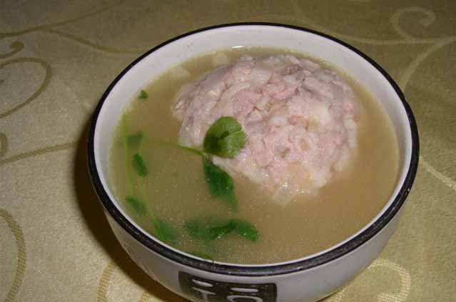 酸汤鱼米狮子头:狮子头里有马蹄碎,酸汁吃起来不腻~