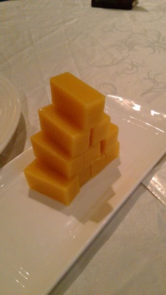 还有一个微博关注送豌豆黄的还没来得及说人家就走了 后来又叫了一次 人家跑了第二回 忘了说想要小豆凉糕服务员也没问 就默认豌豆黄了。 但是味道不错 很细腻 豆腥味也不大 甜度可口
