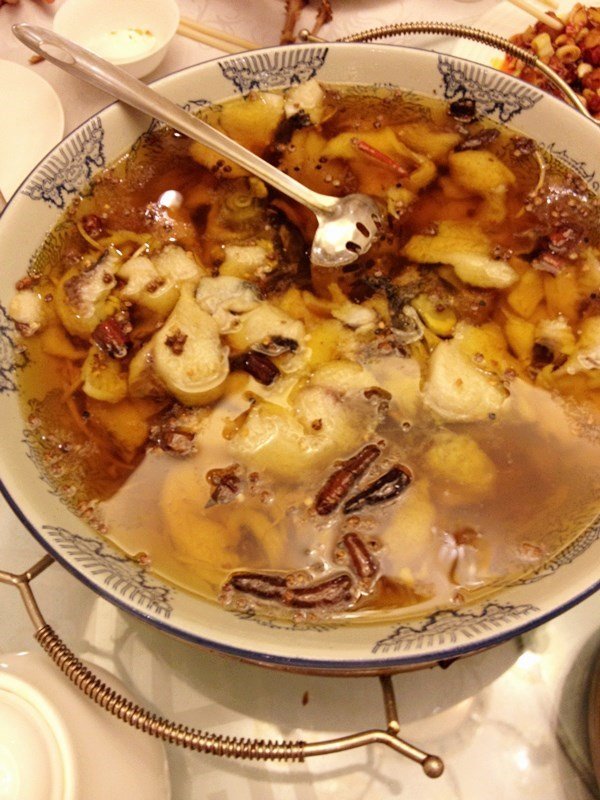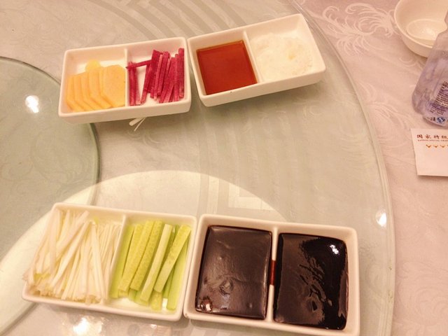 【味道】凉拌木耳,清肺排毒,木耳肉质很厚,口感不错。宫保鸡丁酸甜口的,葱段挺多的,不是很辣。鸭翅,肉不是很多,但很入味。芥兰,很清淡,芥兰也很嫩,挺爽口的。铁板茄子,油有点多,要是能连着茄子皮一起做就好了,最喜欢的就是茄子皮焦焦脆脆的口感了,酱香味倒是挺浓的,下面铺放的一层洋葱很入味。水煮鱼,不是很好吃,看来做这个不是很在行啊,鱼肉口感不是很有嚼头,有点绵绵的,不知道是不是不新鲜的缘故,豆芽看着也不是很新鲜,油的颜色特别的浅。烤鸭,他家的精品烤鸭味道还是不错的,鸭皮不是很厚,焦黄黄的很美味,皮连肉一盘也不错,纯肉的大家都不是很喜欢,鸭饼和小火烧也都不错,鸭饼很薄,很烫,特别香。小火烧芝麻味很浓。