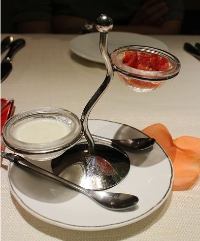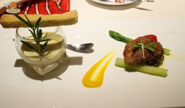 他家环境真是好,餐具都是特别精美的。我们的套餐包括开胃酒,面包,汤,沙拉,主餐,一道一道给上的,上菜顺序比较讲究。
