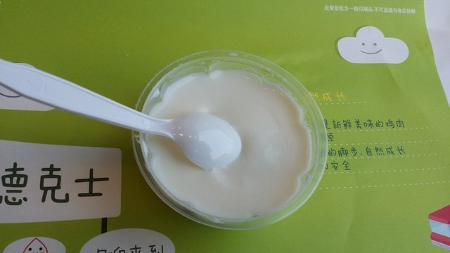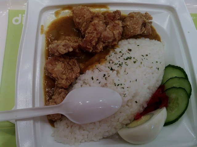 造型很漂亮,也很注重营养搭配,里面搭配了青菜和煮蛋。量比肯德基的饭量小一些,不过饭做的比较好吃,不那么软。米饭上面点缀了香叶。鸡块外皮是炸过的,里面的肉也嫩,咖喱也很香浓。搭配的青瓜很脆嫩,还有红色的那个菜,不知道是什么,不过脆脆的很好吃。这个饭,还可以搭配一款饮料类的点套餐。