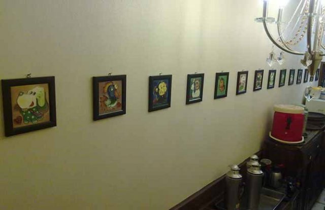 进门有个小小门廊,左右各一把“古董椅”。迈进餐厅,迎面一个小桌子上一小屏风,一盆金鱼,数枝竹子,装点得古香古色,但不压抑。有些墙壁上会挂上几幅小小的“丁丁历险记”的漫画和卡通生肖画,显得典雅中不失轻松,很有“港味”。