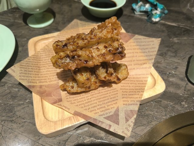 ~風味黑糖茄子 ~ 單單看外表完全看不出是炸茄子, 脆皮外層加上少少黑糖醬(味道不算太甜).