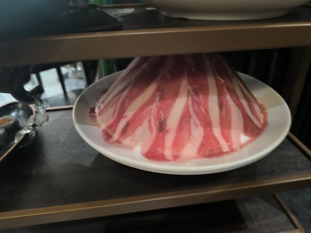 ~火山肥牛🐂 ~ 餐廳將一碟肥牛以雪山裝飾上檯,但是牛肉味道不太濃.