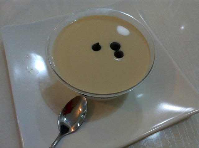布丁上被浇了些百利甜酒,第一口吃下去,感觉很醇厚,布丁细滑,口味都不错。