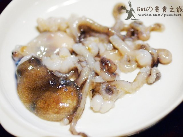 活章鱼是一只只售卖的,很灵活,吸盘吸力很大,比大个的章鱼更滑,沾点麻油和酱油,不错,看到有朋友整只吞下,瞬间思密达附体,绝对PF;