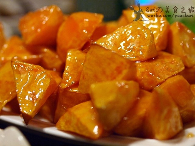 最后上来一份拔丝地瓜,太霸气了,量超级大,适合4-6人食,口味不错,脆脆甜甜的。