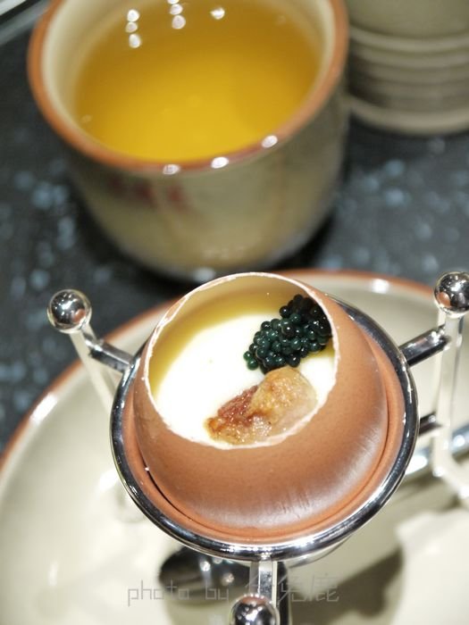 鹅肝鱼子蛋:这个名字是我自己叫出来的,这个蛋是一开始厨师就会烧给你吃的,味道很赞,很鲜,鱼子酱,鹅肝,鸡蛋的多重享受,装盘也美~