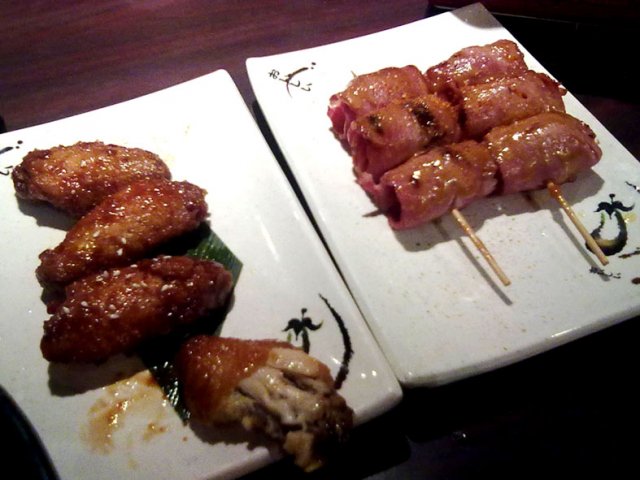 黄瓜是蒜泥的,蛮爽口,不过吃完就会很有负担了。鸡翅和培根串实在是吃不下了,只好打包带走。培根卷味道还不错。