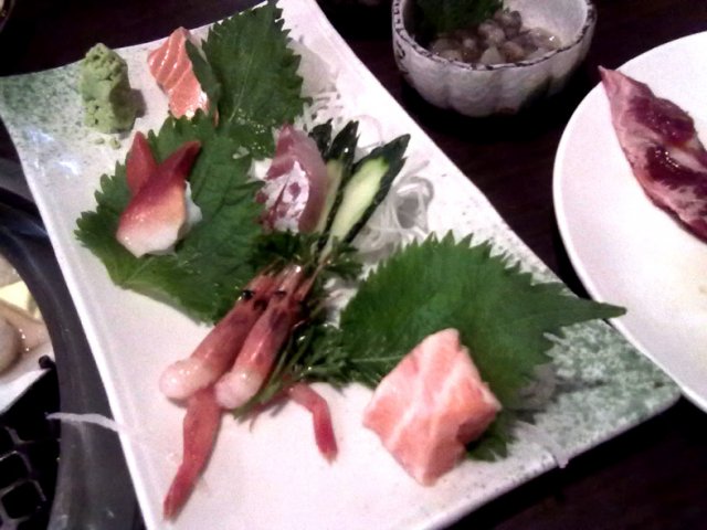 他家的自助主要是吃日式烧肉的,不过,吃日本料理不能少了刺身啊,三文鱼,甜虾,北极贝先来一份,三文鱼腩非常不错,入口肥糯,超级棒。北极贝不是很好,还吃到沙子。甜虾还不错,只是在点了两次后,尽然说木有了。