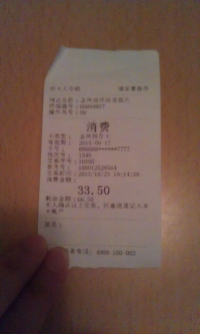 PS:金凤的礼品卡,价值100元,今晚花了33.5元,哈哈不错。虽然近期电视台有爆光其不良的形象,不过已经习惯了,偶尔吃吃还不错,哈哈,我心太了。
