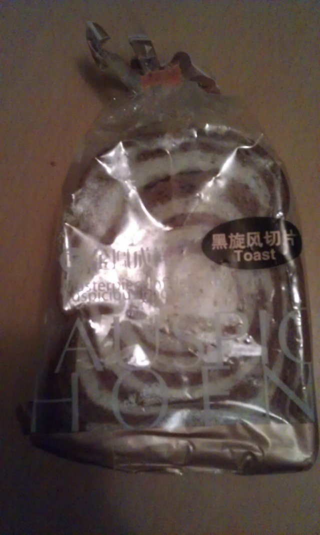3、黑旋风切片,里面有6片,颜色是一圈圈的夹馅,那黑色的夹层是加了可可粉和巧克力粉,吃着有黑巧的甜浓味道,口感绵软,味道不错。