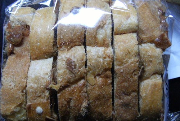 苹果面包:中间是店家自己熬制的苹果酱,格外香甜细腻,面包发酵程度很好,松软而湿润。