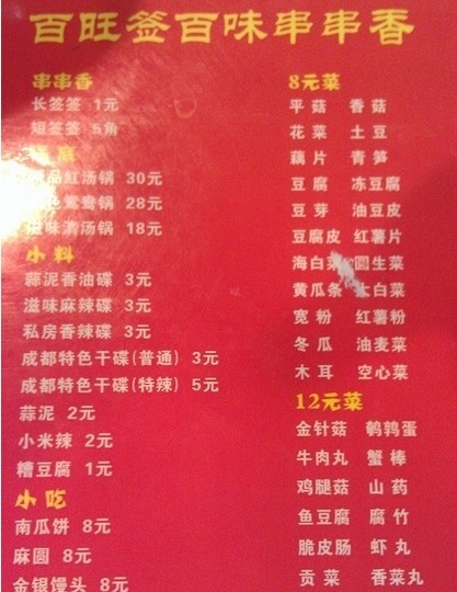 百旺签百味串串香 果冻225等級32013-10-2811 瀏覽 關注 位置有点不太好找。地铁人民大学站A2口出,沿着当代商城前面的一条小街(全是小店),一直走,右手边有个黄色的牌子写着“签百味串串”,然后右转走到头就到了。 我们选了个红汤锅底,他家辣锅底真的很地道,十足的成都味,还有香油小料(上面是香油,下面是辣椒),和我再成都吃的一个味。最最重要的是有成都独有的唯怡豆奶,吃串串配这个很地道。开始选串串了,秘制排骨、蜜辣翅中、撒尿牛丸等,还选了很多蔬菜,种类很多。我最喜欢的就是秘制排骨,是那种肉和脆骨混搭的,相当给力。翅中也相当好吃,腌制的特别嫩,煮的都脱骨了,吃着很方便。以上食評乃用戶個人意見 , 並不代表OpenRice之觀點。讚好分享百旺签百味串串香 百旺签百味串串香 https://s.openrice.com/KtbT1m0zW8400檢舉 張貼 評分5味道4環境5服務4衛生4抵食