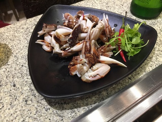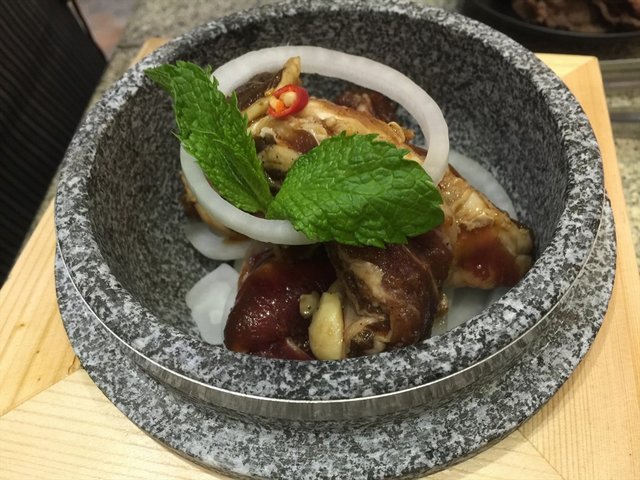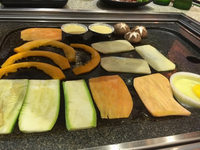 一开始石板还不太热的时候放的蛋挞很新奇,甜品在一开始就上来很开胃啊~蛋挞味道不错,毕竟是现烤的,点个赞~