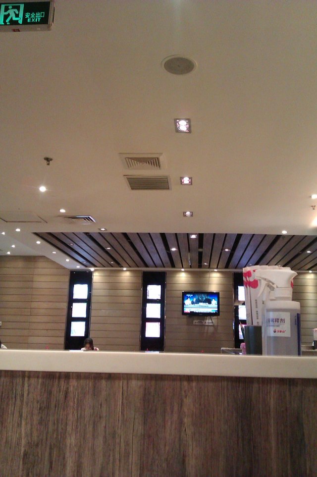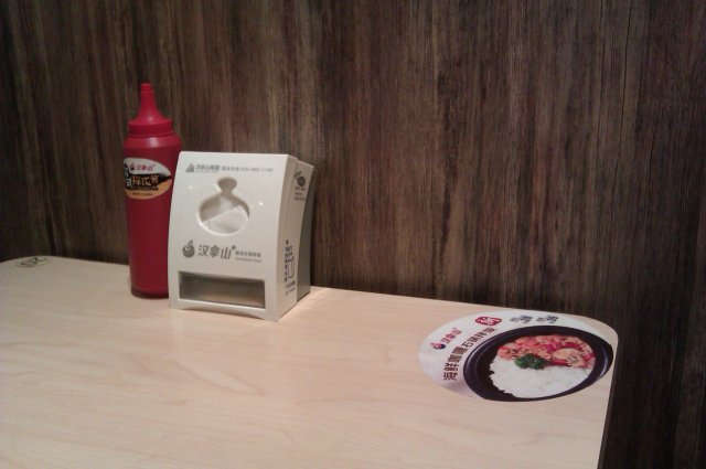 桌椅之间有地方有隔段,而厅内也有电视能打发时间~~比一般的快餐店好不少~