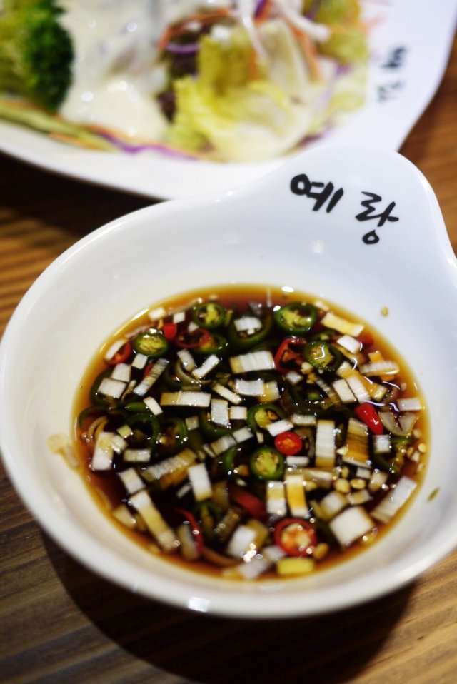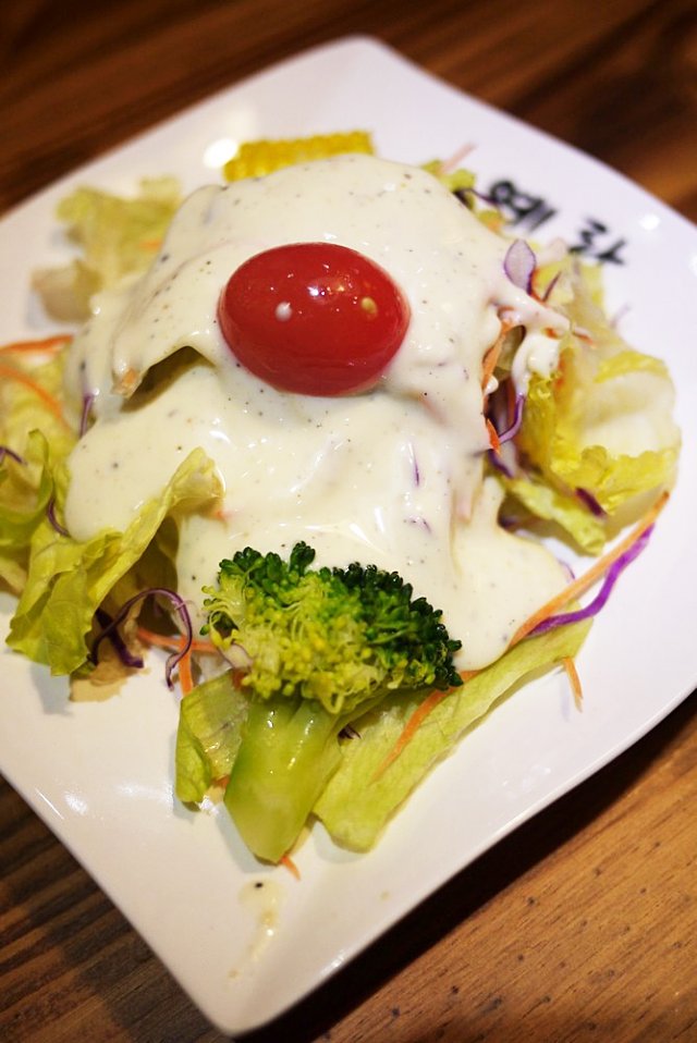 前菜品种也不少,蔬菜色拉清爽可口,拌鱼皮很特别,泡菜很有思密达的感觉。