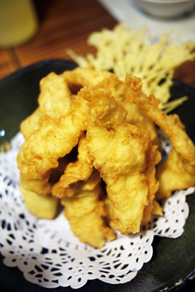 河鲜,吃法很多,清蒸的、刺身的、铁板的、油炸的,还可以放在火锅里吃,清蒸的品尝的是最原汁的鲜美,当然蘸上店家的配料口感层次更丰富了,还可以吃到鱼皮,很特别哦。铁板的会放比较多的酱料,也比较入味,一不小心就夹到一大块鱼籽呢。油炸的像天妇罗,也有专门的蘸料,外脆内鲜,很好吃。刺身的比较特别,以前没吃过,切得好薄一片,灯光下很美,鱼肉内包上鱼皮什么的,蘸点酱料味道更好。火锅内除了鱼肉外还有好多蔬菜,荤素搭配得很好,盛上一碗汤感受一下,冬日里特别暖和。