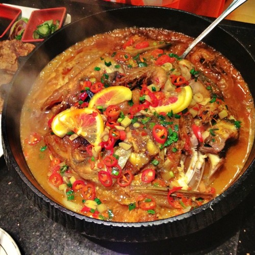 这家祖祖餐厅位于虹桥路上,餐厅主打台湾菜系。店里的环境优雅,服务热情主动。点了比较有特色的冬阴功鱼头。听老板介绍说这里的鱼都来自太湖,因为太湖水质好,所以鱼吃起来不会有土腥气。鱼头先要经过油炸,再简单的调味,最后淋上他家的秘制冬阴功酱料,听说这个酱料用小火熬制了12个小时,味道超赞哦。终于,鱼头上桌了,卖相很好看,一口下去,先是感觉鱼肉非常鲜嫩,传说中的冬阴功酱料味道不是很重口味,酸甜味中还带一些微辣,属于小清新型。鱼肉非常入味,的确很好吃。有兴趣的可以来试试哦。