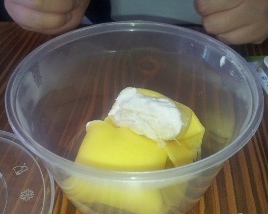 价位不比糖品低~粘粘的榴莲羹上面放着个香草的冰激凌,吃口带着点咸味所以怪怪的,细品了一下,发现榴莲羹里还放着玉米,那也应该是甜玉米呀?冰激凌奶味过重,多吃两口有些腻~总体感觉一般!