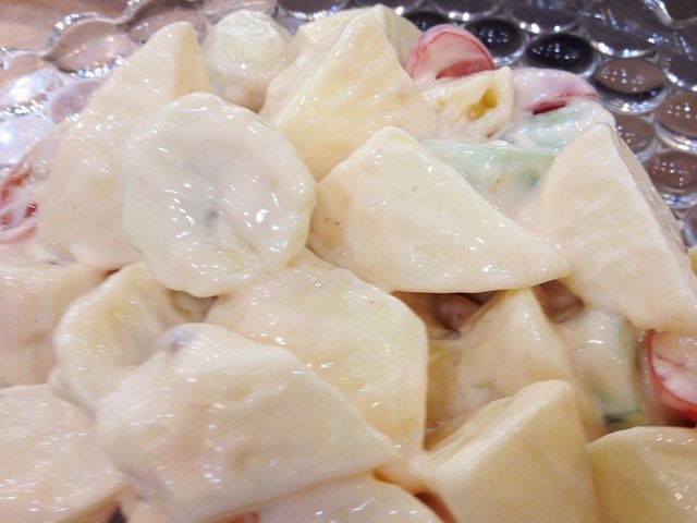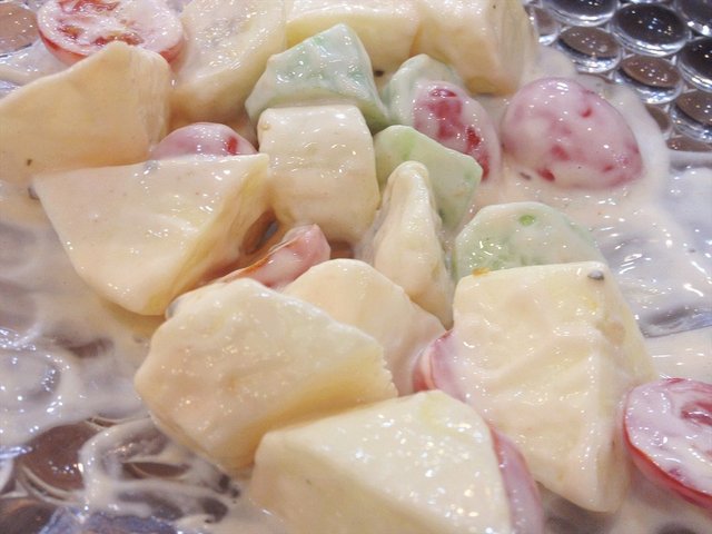 沙拉里面黄瓜太多了点,其他的就是苹果和香蕉,倒是很甜。