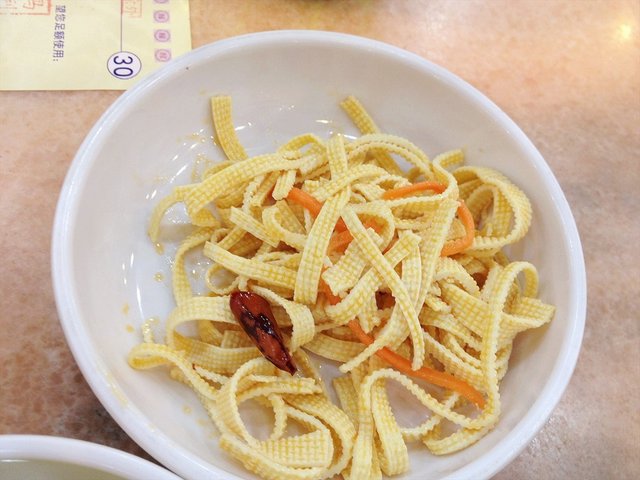 豆腐丝里面放了辣椒,所以稍微有点点辣味。