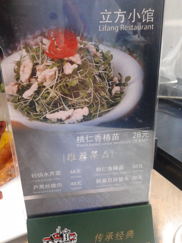 立方小馆 百分百100%等級32013-11-251 瀏覽 關注 立方小馆在东城区东四十条甲21号南新仓大厦1楼,很有格调的一家餐厅,室内装修的很雅致,空间较大,店员工作很积极。时令的桃仁香椿苗很好吃,桃仁是选用的鲜核桃仁,味道清新可口,带着一点甜味。香椿苗的味道很浓郁,颜色漂亮,口感清脆爽,很桃仁拌在一起很好吃。还有果香酥皮虾,虾仁脆瓜等,味道也都很好。以上食評乃用戶個人意見 , 並不代表OpenRice之觀點。讚好分享立方小馆 立方小馆 https://s.openrice.com/KtbT1m0O9i800檢舉 張貼 評分4味道4環境4服務4衛生3抵食