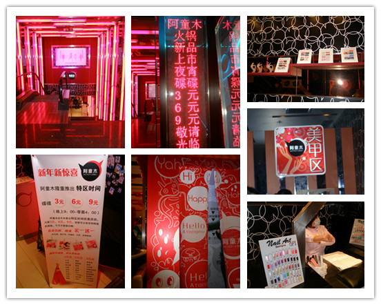 由于我是下班直接过去的,所以到的有点早,就在店里随意拍了照片。话说还真的是很漂亮哦!从店面口到里面位子,环境那真的是没话说了。黑红色为主色调,经典的搭配。连洗手间也是那么干净舒适的感觉!再看了看夜宵的广告,菜品3元,6元,9元哦!指定饮料,啤酒买一送一的,真的超值啊!传说中的豆捞的环境,傣妹的价格,我算是相信了!嗲!
