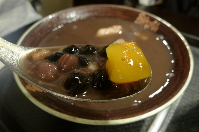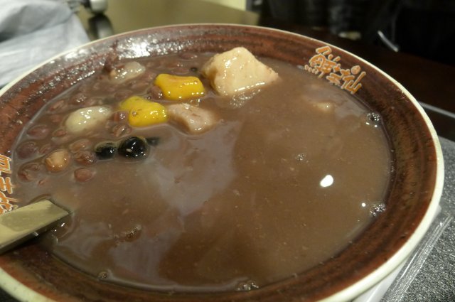 @芋圆4号/18块,里面有红豆芋圆珍珠,不过我对红豆不大感冒,尤其是那种红豆汤。。。不过里面的芋圆啦,珍珠啦还比较Q的,如果要是冰的说不定更好吃啊~等到天热就可以试试看啦~