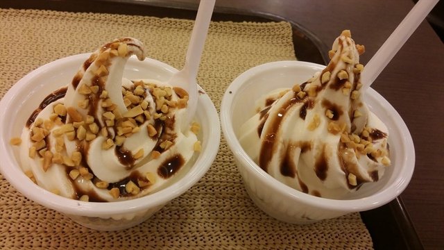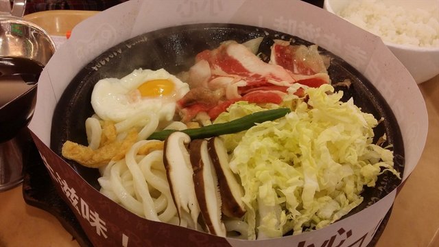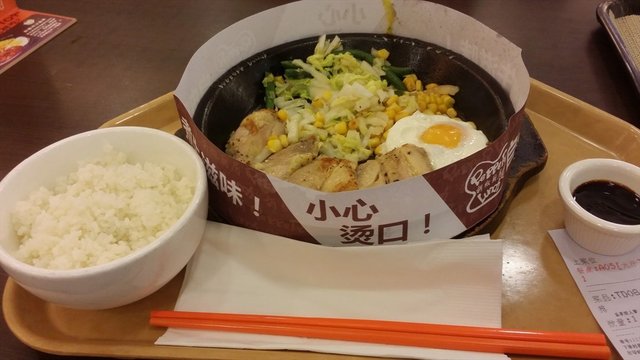 首先说说环境吧,地方到挺大的,因为店外面那也摆了几桌。看起来很干净,有点中式吉野家的感觉,我们就要了双人套餐,里面包括两份冰激凌。套餐是鸡肉的和牛肉的。上的速度很快,而且服务员看我不怎么会吃,还主动帮我们拌饭,这个态度蛮好的。但是让我无力吐槽鸡肉,特别软,口感特别不好,牛肉的勉强还可以吃。然后就是觉得不太值,因为拌饭,菜挺少的。鸡肉也就那么四五块的样子。说说两份冰激凌,不是我所想的那种,是那种超级凉的感觉有冰的感觉,不是那种纯的。口感像冰沙,而且特别甜。。好吧,我可能不太会点,这个鸡肉的还是那个店的女女推荐的,貌似是店长类的,可能其他的口感会好吧。