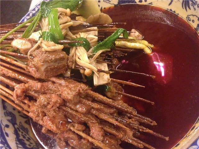他们家串串脆骨特别好吃。但是牛肉一般。
