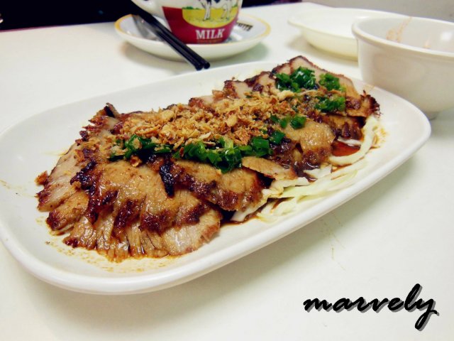 这道菜似乎只要在东南亚餐厅,总是会习惯性的点一道。猪颈肉切得不厚不薄的,和经常在泰式餐厅里吃到的不一样,猪颈肉下铺着细切的卷心菜,撒着有些红烧味道的酱汁,这酱汁其实还带着一点点的辣味道,柔嫩的猪颈肉有点甜,有点辣,既入味,又甜美。