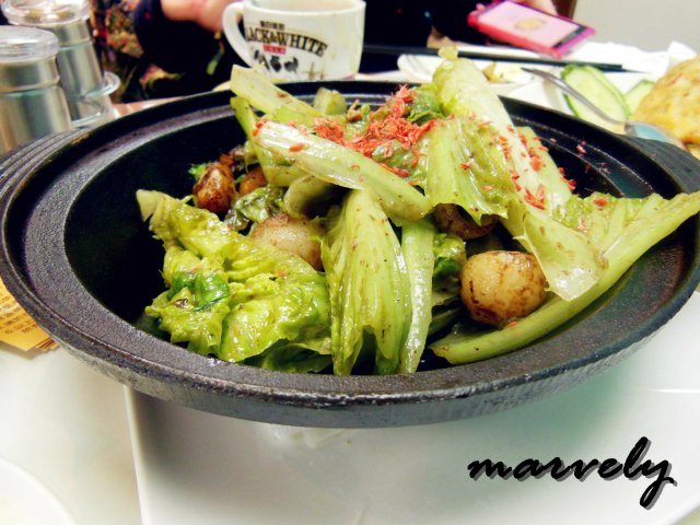 蔬菜也是要点的,我们点了啫啫虾酱生菜干锅,32元。