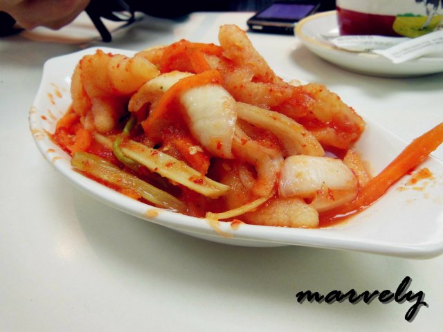 也许是辣椒膏的味道有些过重了,所以花蛤肉吃起来很咸,而且酱汁调的过于浓厚,口感上也没有什么很突出的地方。