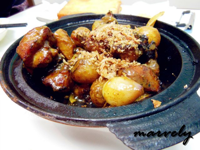 同样是一道鸡肉的料理,这道菜稍稍的为潮人餐厅扳回了些局面。酱料的味道并不只有咖喱,感觉有些本帮菜的浓油赤酱的味道,搭配起来的口感有些厚重,但是却让鸡肉变得更加香嫩,但是我剑走偏锋的喜欢上了里面作为配菜的小洋葱。小洋葱个头和一个一元硬币差不多,表皮上蘸满了酱料,咬起来有些清脆,里面除了酱汁的味道,还有点点甜丝丝的口感,丝毫不觉得辛辣。