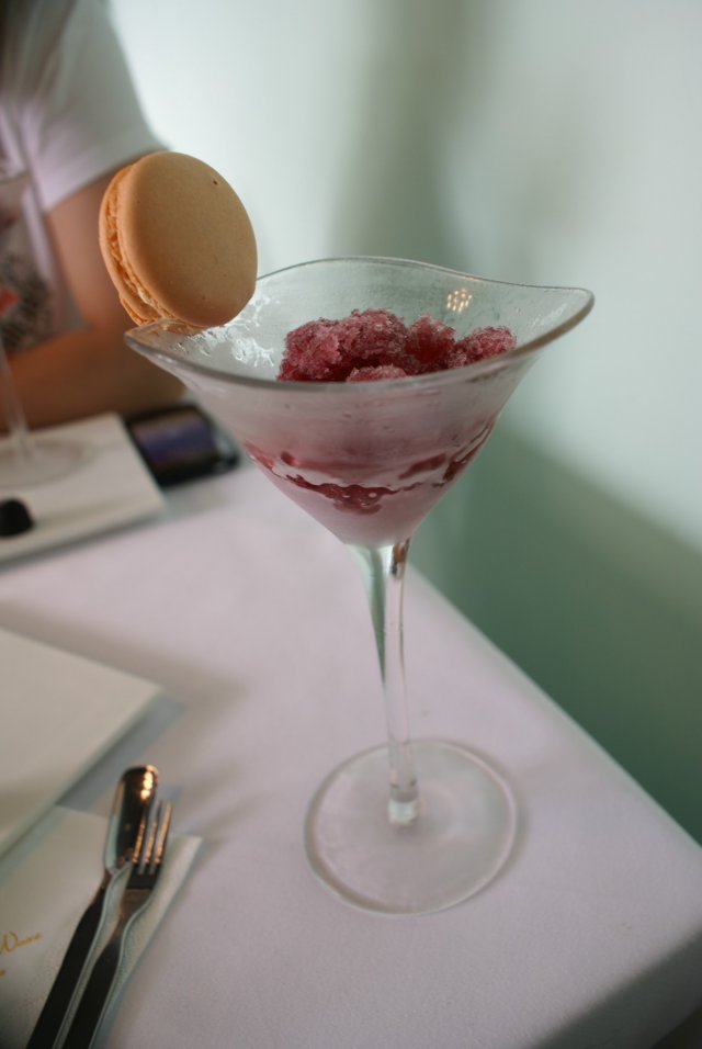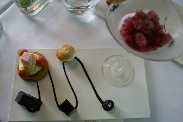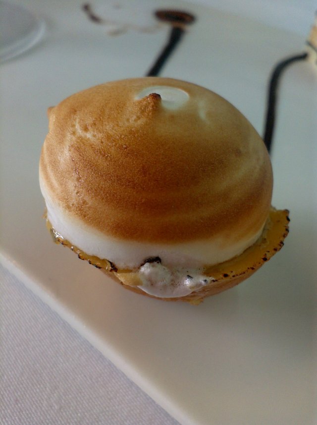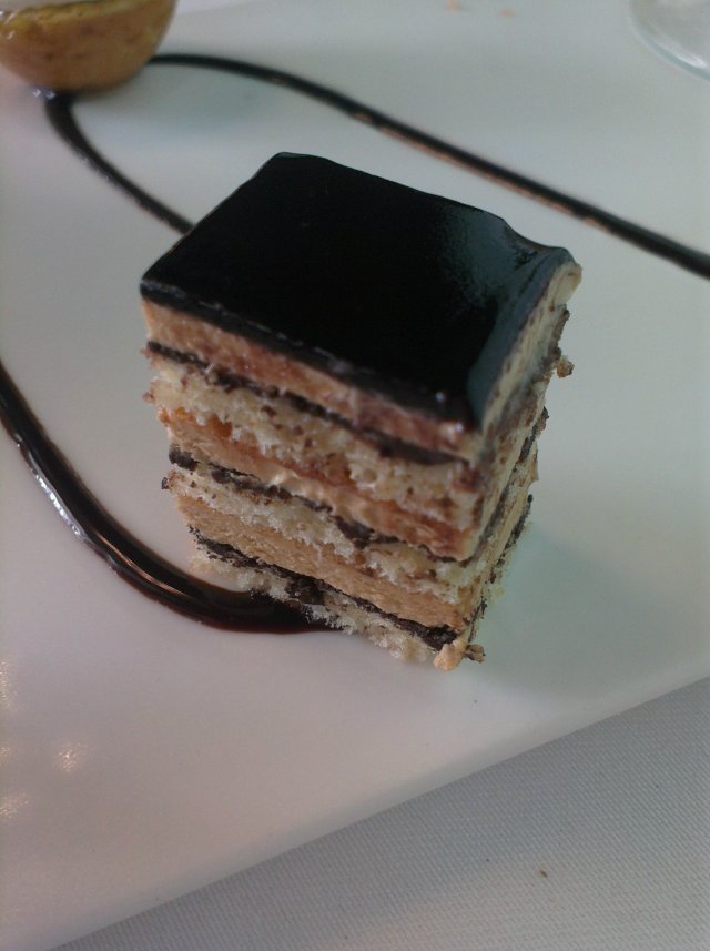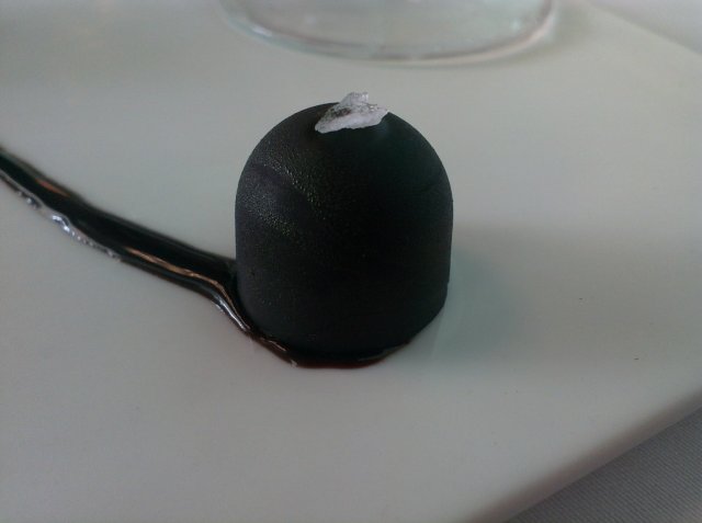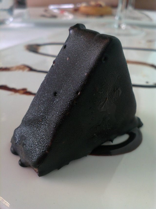 里面是柔软的慕斯,黑巧克力是我的死穴,所以即便前面几个甜点吃的有些甜腻了,但是我还是细细的吃完了这道甜品。