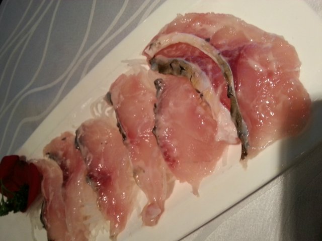 青鱼片,BF知道我喜欢吃鱼片的,所以特地点给我的呢,鱼片在水里一趟就熟了,鱼片非常的嫩滑,没有腥味,而且肉质很有弹性,不会粘牙,而且一盘也有蛮多的呢~