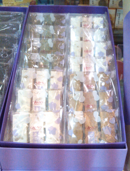 公公很喜欢吃牛轧糖,但口味较挑,只吃很老式的那种,但这次回家比较匆忙,于是到元祖提了一提牛轧糖礼盒,相信公公会很喜欢吧。还真是,公公一看包装说:不用这么好的,我只需要最老式最传统的那种,这么好的包装肯定废了不少钱吧。我就安慰公公不贵不贵,让他赶紧尝尝,他说很好吃呢,还说有传统的牛轧糖味道并加入一些创新元素吧,反正不那么难嚼。我暗自思忖,估计公公牙齿现在不那么好了吧。。。以后就不那么麻烦了,既然公公喜欢吃,那以后就买这家的了