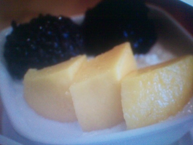 微薄上朋友推荐的,作为甜品爱好者肯定要收藏的,纠结了好久,总算是和朋友两个人都有空的时候去了他们家。店很好找,而且朋友之前已经来过了,所以很方便。走进店里,人还是蛮多的,基本上都坐满了,正好还有一个空位,很幸运哦。环视了一下整个店铺,桌子和墙面都是木质的,有点点复古的味道。在朋友的推荐下点了多芒黑糯米,貌似是叫这个名字。。。一碗满满的,量很足,上面有两个黑糯米和三大块芒果,底下是淡淡的奶油,不腻。黑糯米尤其好吃,超级软糯,甜甜的。