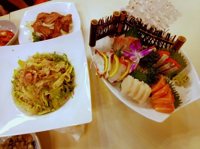 【红叶特级刺身盛和】100元,这个很好看,有3种左右生鱼片之类的,我本人不太喜欢吃生的,所以没吃,不过看着还行。