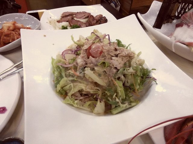 我们是团购的是四人餐,200多,坐在外面拼了两张小桌子,不是很方便。