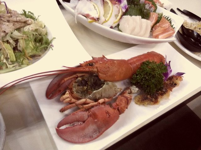【大龙虾】这个造型颜色很好看,实际上虾是已经脱壳的,就是个摆设,肉已经取出来了,一小条,还没吃出什么味就没了,肉有点干。