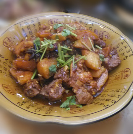 土豆炖得很烂,也比较入味,恰到好处。鸡块很鲜嫩,量也足,很实惠的一道菜。