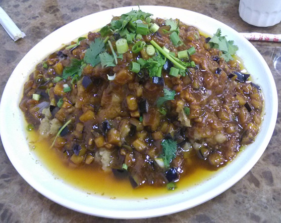 这道菜分量更大,上来都能吓到,里面的土豆做成了泥状,茄子切成小丁,还有一些肉沫,刚吃味道不错,不过不禁吃,吃多了感觉腻。