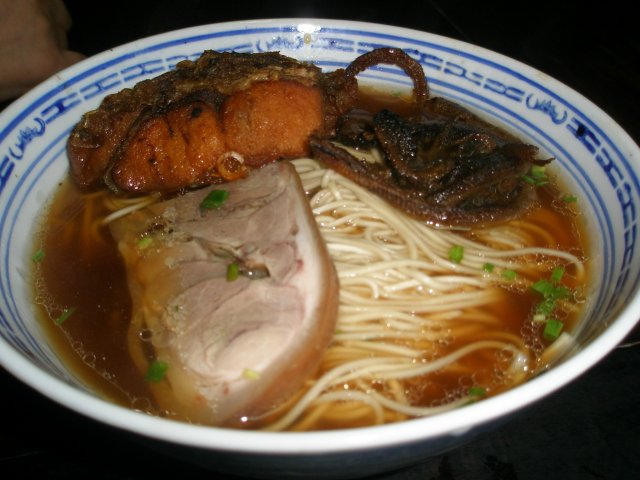 面条就是一般性的细面,配上红汤味道很好,我就喜欢红汤面,不过这个估计只有江南人吃的习惯吧,北方人估计吃不惯的。