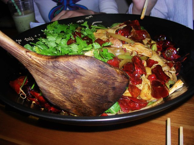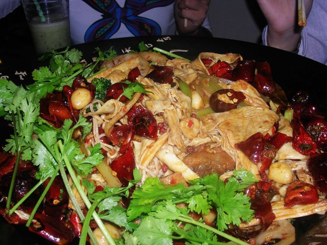 本来想点蛙,但是担心炒碎了于是就没点。点了十来个配菜吧,能想起来的有鸡翅、午餐肉、腐竹、青笋、笋尖、西兰花、金针菇、油豆皮,其他的不记得了。【鸡翅】是先炸了以后再炒的,这样会影响鸡翅的口感,最后会感觉软趴趴的,不喜欢。。