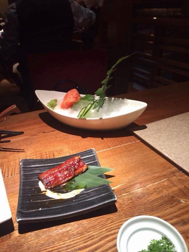 烤鳗鱼:鳗鱼是个人最喜欢的,鳗鱼的酱汁鲜甜可口,那种黏黏的甜酱涂抹在鳗鱼上面,油亮油亮的很有食欲的感觉,入口即化的感觉,鳗鱼的本身鲜美味道被牢牢锁在里面,好吃!