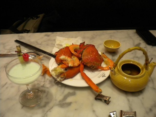 进入生冷环节。刺身每个吃一遍,再着重吃甜虾和三文鱼。三文鱼片虽然切的挺厚,但是块很小,而且只有芥末,找酱油找了半天。海鲜这边螃蟹只吃了一个,朋友吃了两个,都有籽,但是太麻烦了。蟹脚里面都是空的,没有那种甜汁的感觉,还不如螃蟹,虽然拿了一盘,但是真的没多少肉。