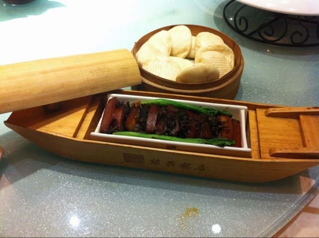 【梅干菜扣肉】:绍兴特采梅干菜,这道扣肉非常的喜欢,造型独特,很有创意的,扣肉非常的有弹性,入口即化的感觉,肥瘦比例恰到好处,夹在荷叶包里面,一层肉一层梅菜,口感很有层次,味道鲜美无比!